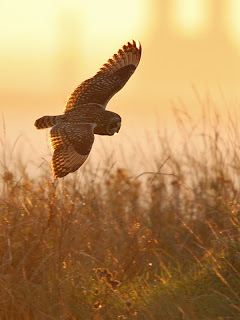 Short-eared Owl at Hawling. I thought I'd probably left it too late to get one, and so my trip was very much a shot in the dark.
